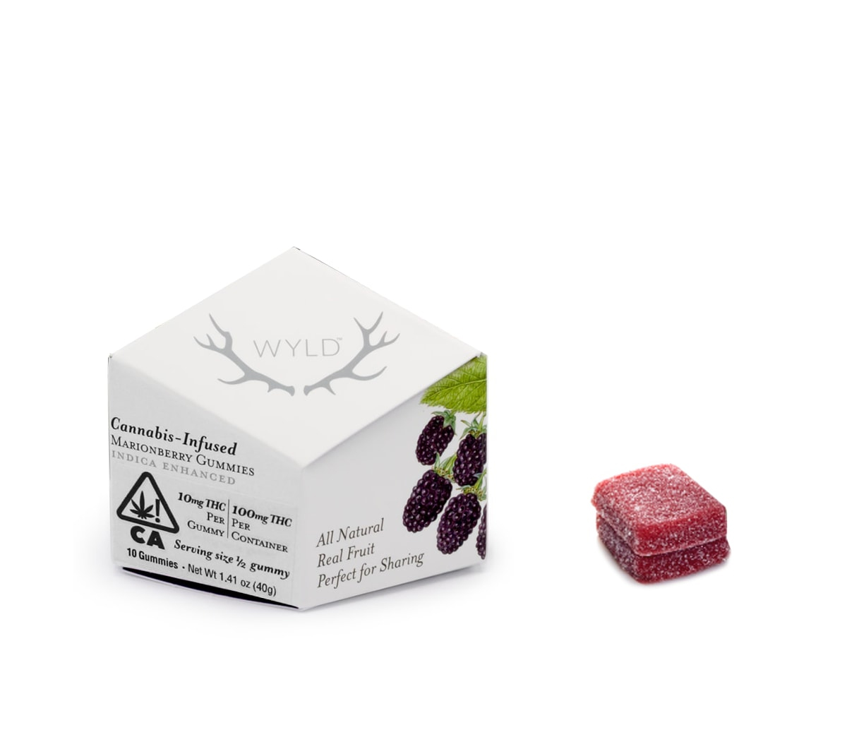 WYLD Marionberry gummies are made with real fruit and are Indica enhanced which makes them a great addition to the end of any long day. Whether eaten around a campfire or in the comfort of your own home, these gummies are great for unwinding.